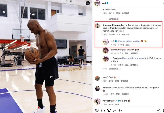 网友评论:自从你离开快船,我们取得了16胜3负。现在我们必须相信卢的计划,即使我希望你的最后一年能在快船结束。