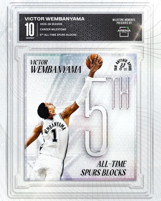 才打了三年,文班生涯盖帽数来到544次升至马刺队史第5